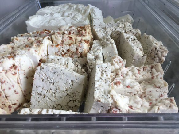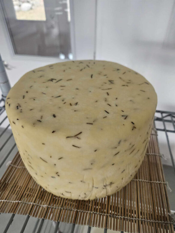 Emma Lou (Goat's Milk) is a mild but so flavorful cheese. It was one of the first recipes that we tried here at the creamery. It is a semi-hard cheese and we fell in love with and named it after my grandmother. It is great in a cheese platter and just to pick up and eat. It is definitely one of my favorites or try it the Emma Lou Dill version, same great recipe just with dill!